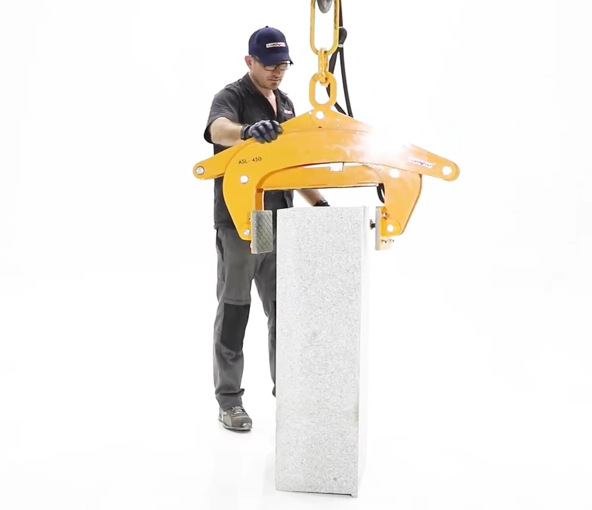 適用于起吊大理石板、花崗巖板、混凝土護欄、路肩和中墻等。產品是利用石材本身的重量反射來夾緊物品,橡膠墊能更好地保護石材表面